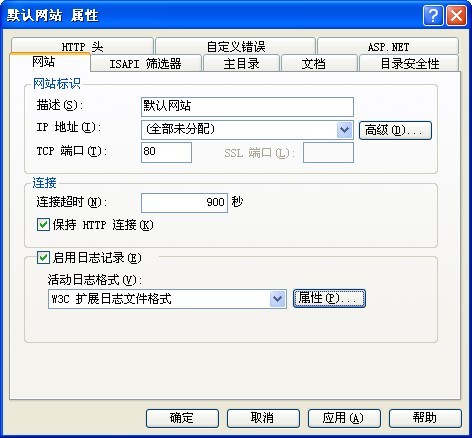 Internet信息服務(wù)的日志文件會(huì)隨著使用慢慢增大,增大后就會(huì)占用一定的磁盤(pán)空間,對(duì)電腦的操作造成影響,Internet信息服務(wù)的日志文件在默認(rèn)網(wǎng)站的屬性中可以查看如下圖所示