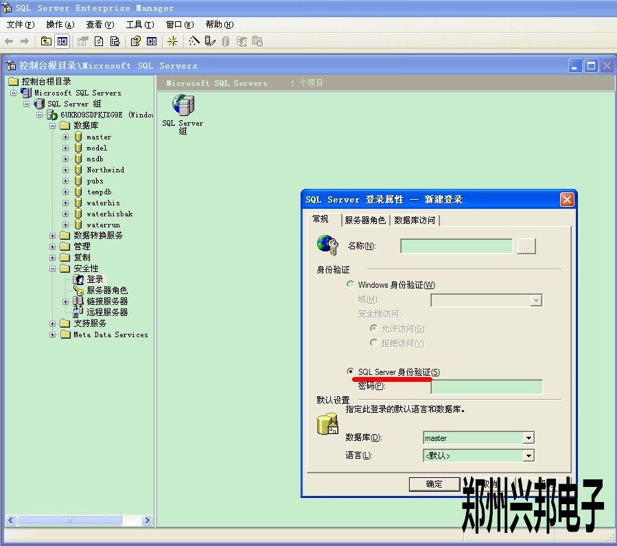 2000數據庫安裝后忘記密碼可以這樣操作進行重設,進入2000數據庫后在安全性上右擊進入此畫面