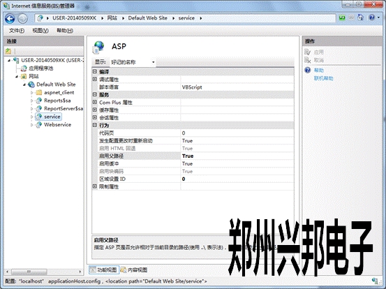 IIS管理器中,展開本地計算機,展開網(wǎng)站,展開Default Web Site,點擊service,雙擊右邊目錄里的asp,啟用父路徑。