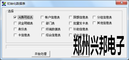 系統管理中數據初始化是可以選擇性的清空信息統計表的數據,可以多選也可以只選擇一個。選擇下圖中的消費明細表,點擊開始處理,在是否初始化點擊是之后就可以對消費明細表進行清空,清空后表中無數據,不影響其他表中的數據。