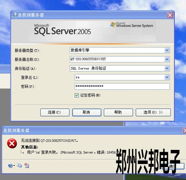 公司開發的can軟件,是用在水控機,售飯機上的,它的功能在不斷的完善,使數據顯示越來越簡單明了,想看數據明細記錄,可以選擇明細查詢,而如果想看總的記錄,可以選擇統計查詢。這些數據全部都存儲在數據庫2005中,當用戶登錄數據庫出現如下錯誤,如何解決,如圖所示: