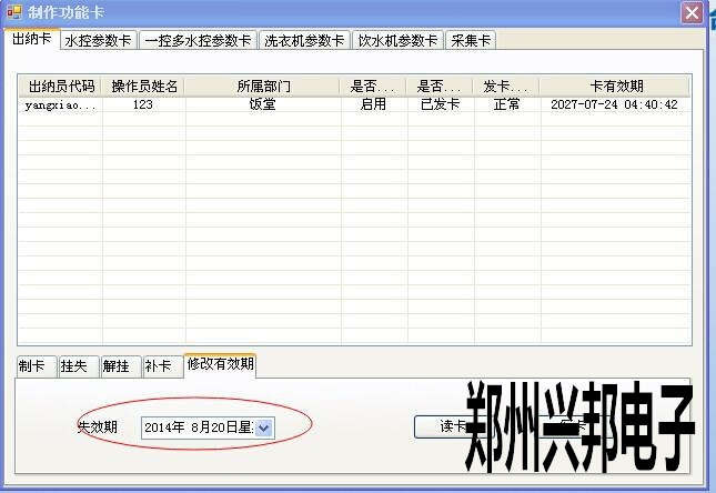 在修改有效期的失效期里看一下是不是過了失效期,如果是過了失效期,把這張出納卡放在讀卡器上點讀卡,就會出現這張卡的有效期,