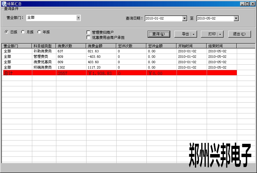 總計中的消費金額為會計給商戶結(jié)算時,應(yīng)該給商戶的金額。