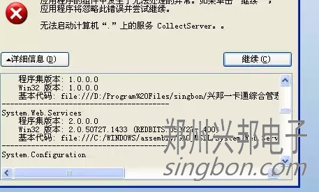 互聯網一卡通食堂售飯機的軟件,在操作啟動采集時提示無法啟動計算機上的CollectServer