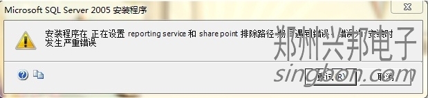 互聯(lián)網(wǎng)一卡通食堂售飯機(jī)的軟件,采集的信息都通過軟件設(shè)置存在數(shù)據(jù)庫SQL SERVER2005中,所以安裝軟件,首先要安裝數(shù)據(jù)庫SQL SERVER2005,但在安裝數(shù)據(jù)庫SQL SERVER2005時,安裝程序可能會在正在設(shè)置reporting和shre point 排除路徑 期間遇到錯誤,遇到的錯誤如圖所示: